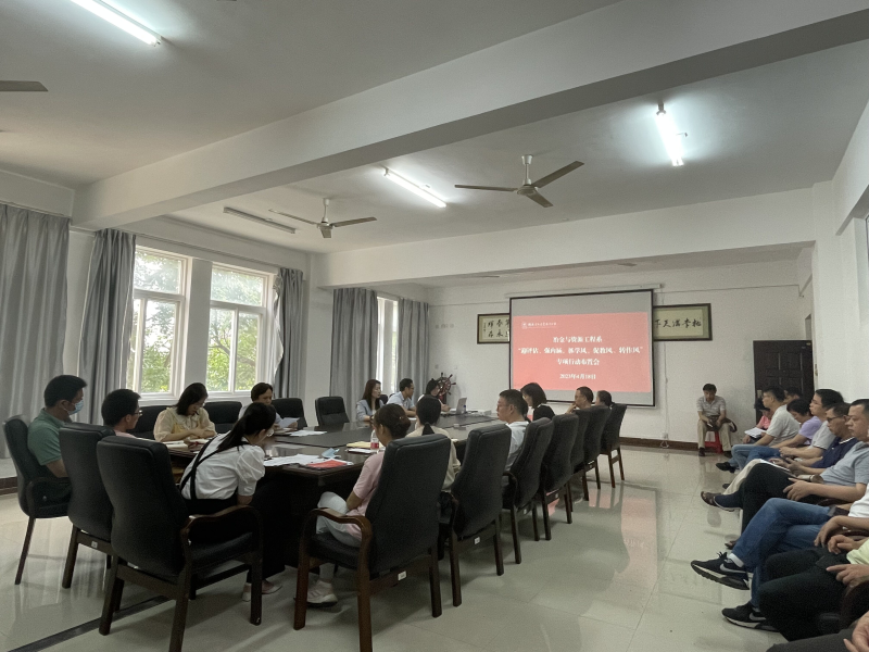 4月18日下午,我系在探源楼5207会议室召开“迎评估、强内涵、抓学风、促教风、转作风”专项行动布置会。太阳集团2138副校长肖彩霞出席会议。会议由系党总支书记石有总主持,系主任何贵香、班子成员及全体教职工参加了会议。