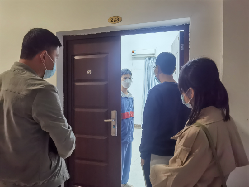 党总支书记石有总一行到健康观察点与学生亲切交谈,详细了解学生在健康观察期间的生活、学习情况,了解学生的现实困难和需求,同时叮嘱学生务必做好自我防护,提醒学生在健康观察期间要严格遵守疫情防控规定,配合做好相关疫情防控工作,有困难有需求及时联系老师。