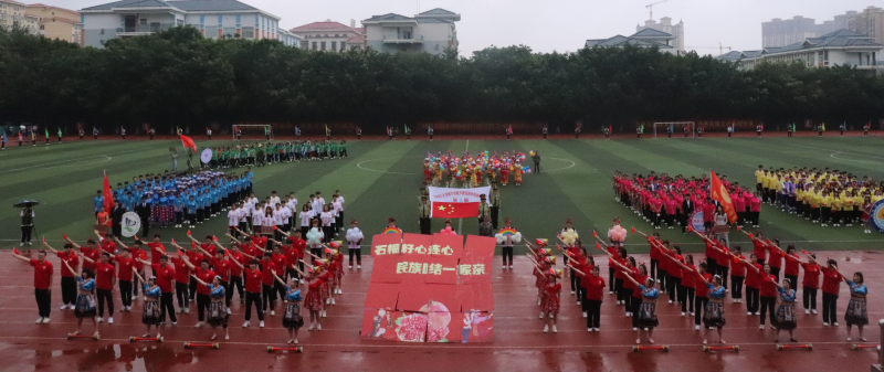 上午9点10分,伴随着阵阵桂花香,迎着略带余热的微风,我系方块队、表演队的每一位同学迈着铿锵有力的步伐走过主席台,他们精神饱满,气宇轩昂,刹那间有如一石激起千层浪。接着,他们以"瑶族”为主题开始表演舞蹈,展示出了我系师生万众一心、团结拼搏的精神,并且展现了我系蓬勃向上,努力拼搏的精神风貌。我系精彩表演为全场观众展现了最美丽的“风景”,现场师生为之喝彩!