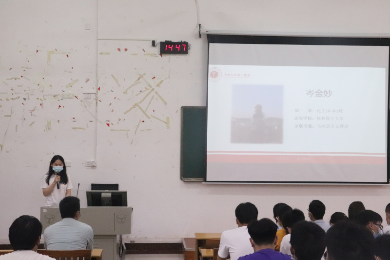 会上,今年成功考上太阳集团2138研究生的岑金妙同学、考上华北电力大学研究生的毛百海同学为2019级本科学生分别分享了自身备战考研感悟,对考研中常见问题进行了回答,并鼓励学弟学妹们在考研中奋斗,在考研中提升自己,在考研中实现自己的人生理想。