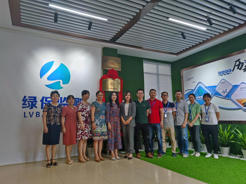 在广西绿保环境监测有限公司揭牌后校企双方合影