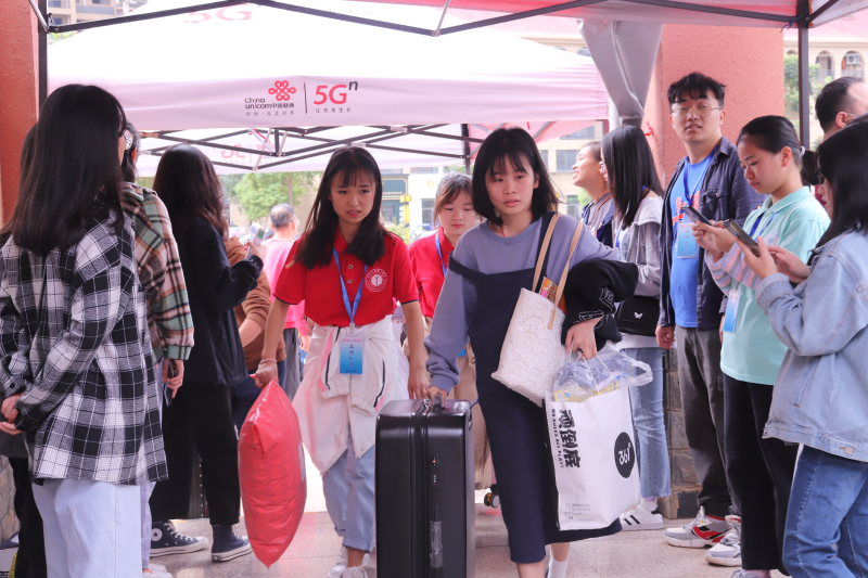 迎新当天,在校园内到处可以看到我系党员、学生干部和志愿者为陆续到来的新生们介绍报道流程,耐心解答他们提出的问题,并主动帮助他们搬运行李,办理入学手续。点对点、一对一的服务得到了新生和学生家长的广泛认可。