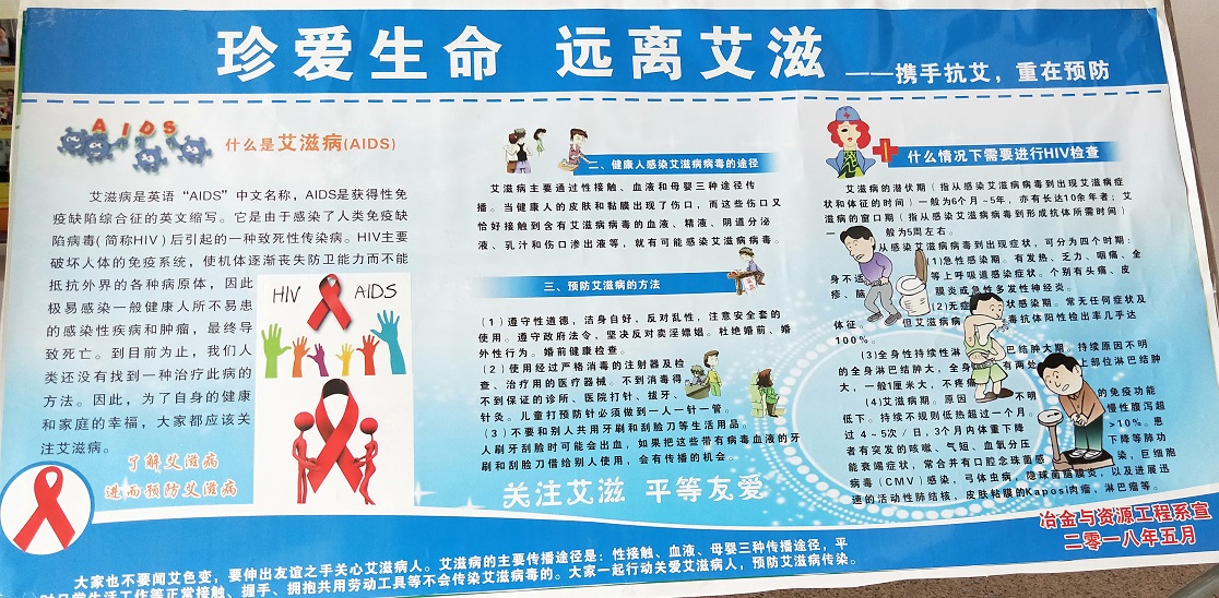 通过多形式多渠道及时张贴海报、发布微信推文等形式进行防艾、防溺水安全教育宣传,营造安全防范氛围。制作了2幅海报喷绘“珍爱生命,远离艾滋——携手抗艾,重在预防”、“结核病防止宣传”和一幅电子海报“珍惜生命,预防溺水”,并在微信公众号推出两篇安全主题推文,即“预防艾滋,从点滴做起”、“酷暑夏日,预防溺水”,旨在通过线上、线下多形式宣传,使安全教育深入人心。