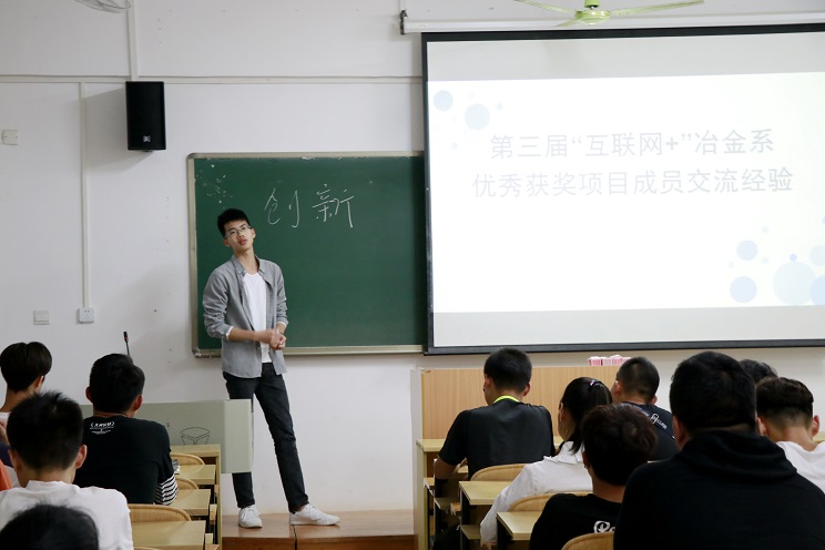 大会上,吴祖枝老师向同学们详细介绍了本次大赛的相关流程,说明了本次活动的意义,解读相关文件的要求,并以我系往届获奖项目中有代表性的创新创业项目案例进行分析说明,并指出要将“大众创业,万众创新”这一口号真正融入大学校园的日常生活中,将冶金系学子一直以来丰富的创新精神传承发扬下去。之后由冶金工程15-1班的黄文彬同学为16、17级的同学们讲述自己在上届大赛中的经验和心得体会,给出自己的建议,有利于同学们项目申报。