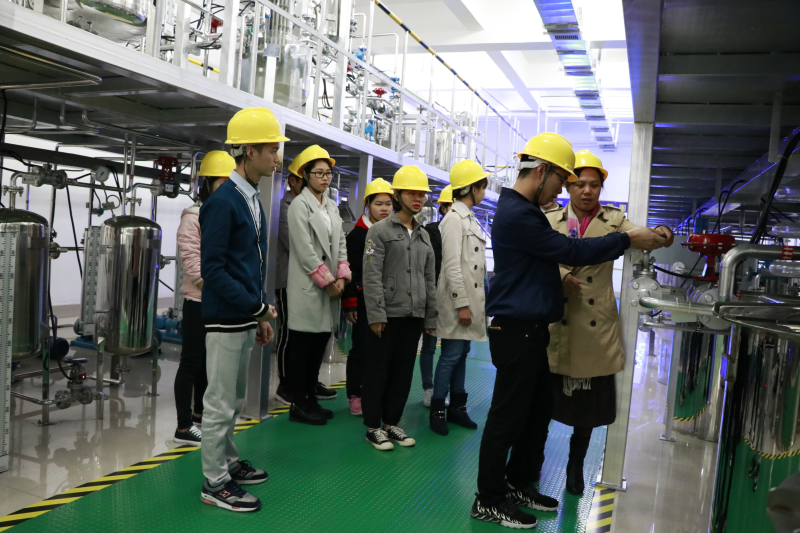 图为师生在校企合作企业实验室进行实验开展情况探讨交流