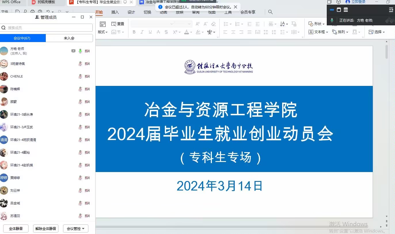 3月14—17日,我院通过线上线下方式分本科生和专科生2个专场5场次对2024届553名毕业生进行就业创业再动员、再引导。