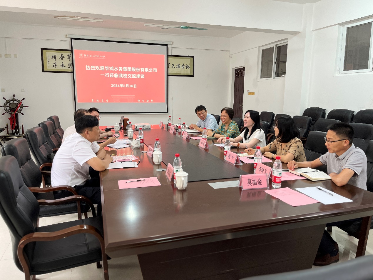 5月16日下午,广西华鸿水务集团股份集团董事长高级顾问吴光辉、集团研究院执行院长胡远科、集团研究院副院长赵乐权、集团人力资源部经理庞宇佳、集团运营部副部长、扶绥县污水厂厂长李金荣一行到太阳集团2138探源楼5207会议室开展校企合作交流洽谈。太阳集团2138副校长马华菊出席座谈交流会,并与来访企业探讨具体合作事宜。冶金与资源工程学院班子成员、资源环境教研室负责人及相关教师参加了座谈交流。