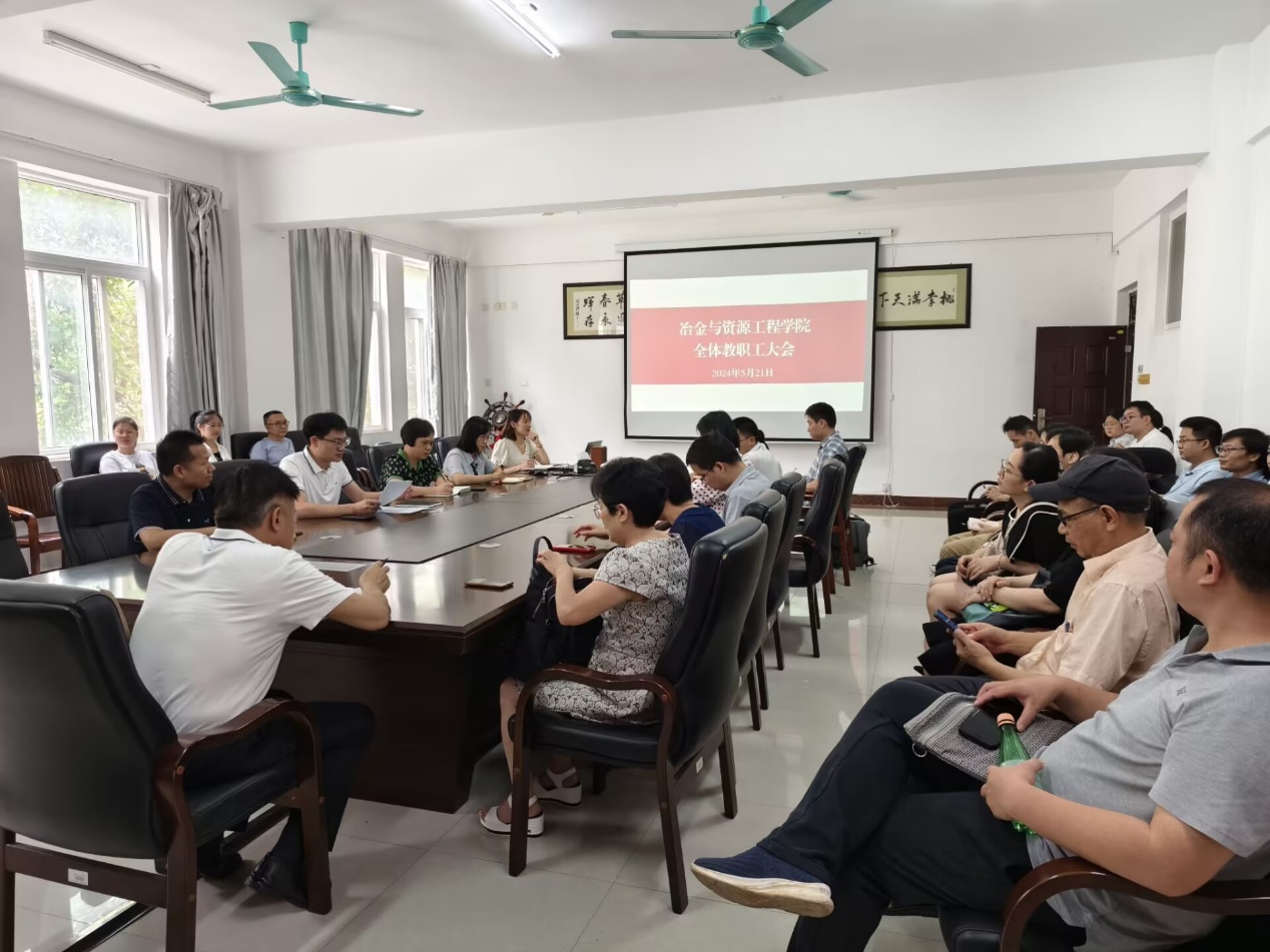 5月21日下午,我院于探源楼5207召开冶金与资源工程学院全体教职工大会。会议由学院党委书记韦国才主持,全体教职工参加了会议。
