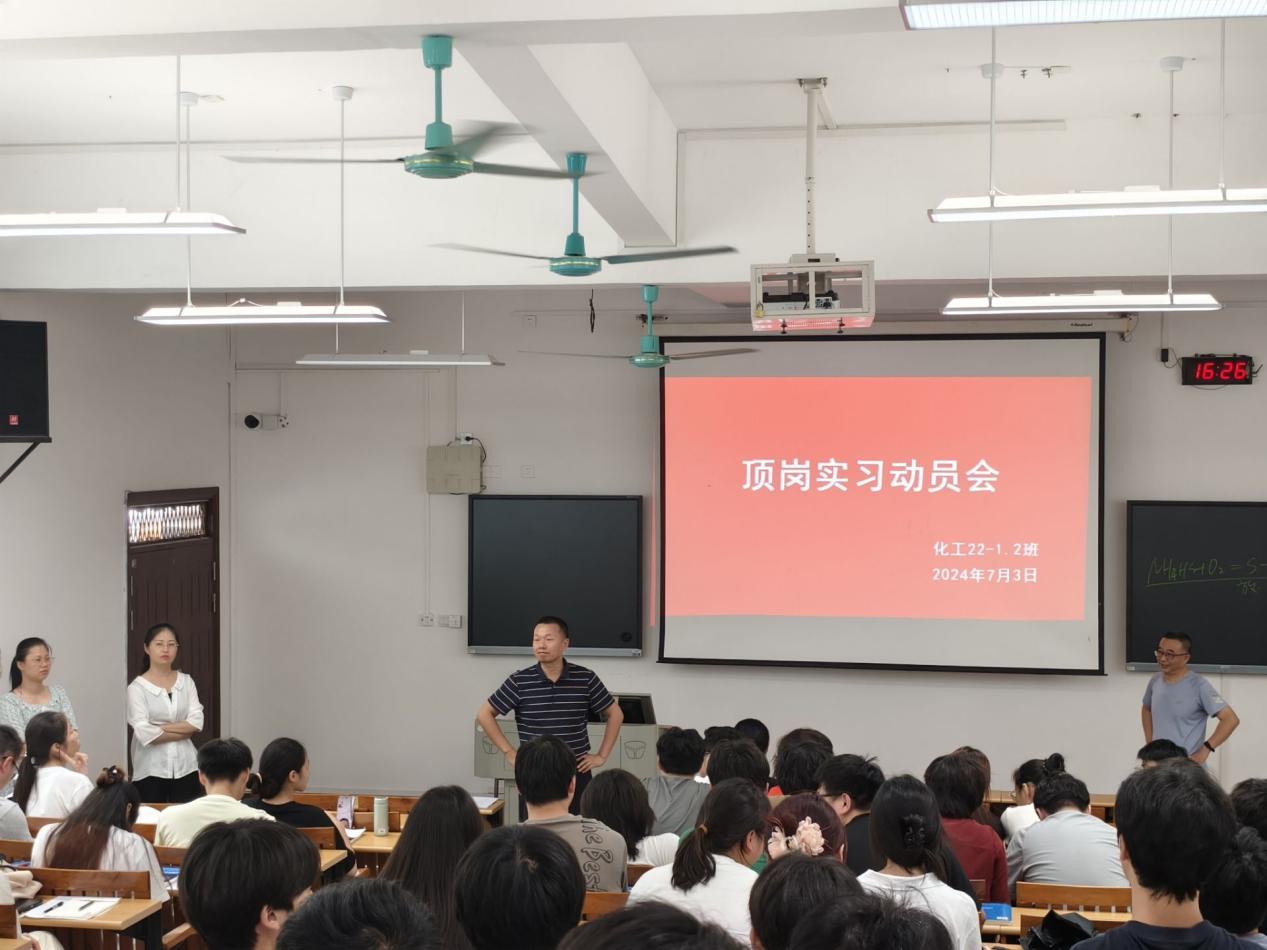 为做好2024年顶岗实习工作,提升学生专业技能水平,增强实习安全意识,7月3日下午,我院于在8306教学楼召开2022级应用化工技术专业顶岗实习动员会,会议由实习指导教师张艳玉老师主持,2022级应用化工技术专业全体学生参会。学院副院长卢友志、实习指导教师、化工教研室部分教师、辅导员刘晓艳出席此次会议。