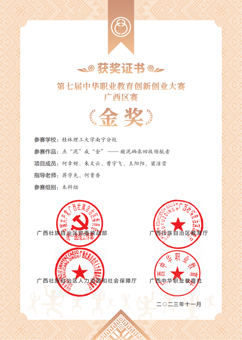 学生在第七届中华职业教育创新创业大赛获广西区金奖