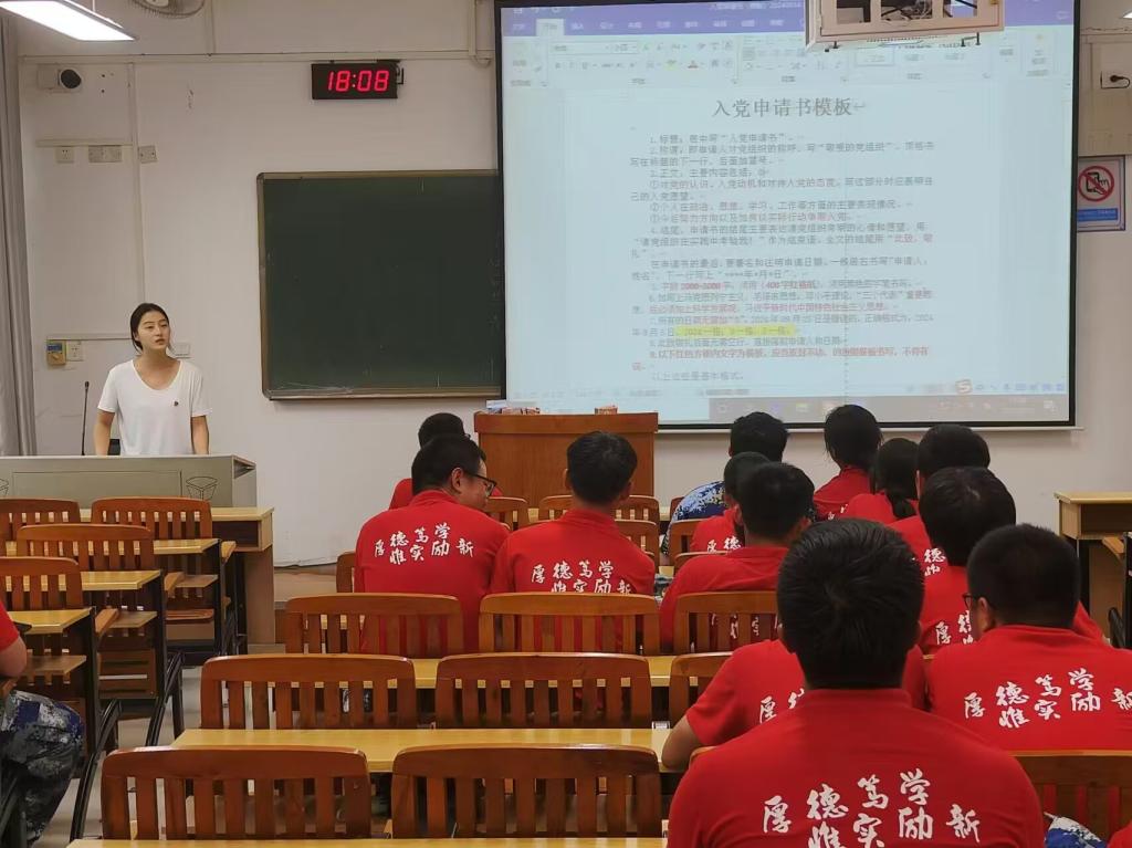 作为高年级学生党员,在思想政治方面具有较高的觉悟和认识,课堂上,他们通过生动的党史故事、结合自身党的理论学习收获体会和成长经历,以贴近大学生思想实际的语言和方式,与新生分享经验、解答疑惑,引导新生了解党的光辉历程,感受党的初心使命,呼吁新生积极向党组织靠拢,分享了入党申请书的撰写经验,并为新生解答疑惑。同时,各高年级学生党员结合自身学习经验,为新生提供了学业规划建议和指导,帮助他们明确学习目标,制定合理的学习计划。