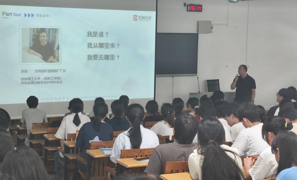 2024年6月27日,吉利百矿集团有限公司氧化铝厂厂长苏圣,莅临我院为冶金学院毕业生做职业生涯讲座。冶金与资源工程学院200多名毕业生在现场聆听本次讲座。讲座由冶金与资源工程学院党委书记韦国才主持。