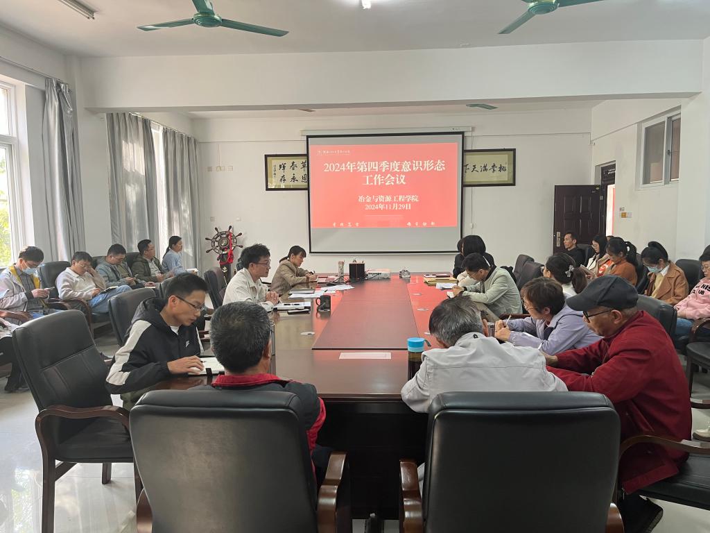 11月29日下午,我院在探源楼5207会议室召开2024年第四季度意识形态工作研判会。会议由学院党委韦国才书记主持,学院班子成员及辅导员参加了会议。