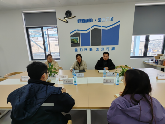 在广西恒逸新材料有限公司,人力资源部经理湛亚简要介绍了公司的结构组成和运营状况,表达对人才的需求,并就张艳玉、黄丽葵老师在企业挂职的情况进行了详细说明,肯定了老师的工作成绩。何院长和卢副院长分别从太阳集团2138发展历程、办学规模、学科专业优势、科学研究、人才培养新模式以及近些年学院教育教学发展所取得的成绩进行了全面介绍,与公司负责人围绕资源统筹与共建共享、技术创新与服务、毕业生实习就业、教师挂职锻炼等方面开展产教融合进行了深入交流,并初步达成了合作意向。