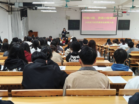 2025年1月6日下午,我院在启智楼8208召开了环境23级与资源23级认知实习动员暨安全教育大会。实习指导老师周龙、黄文富、莫福金、陆燕青、于润组织召开本次会议,辅导员刘晓艳老师、资环教研室主任孟冠军老师及资源23级1班与环境23级1、2、3、4班全体学生参加了本次会议。
