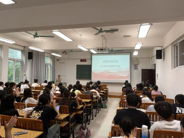 为扎实推进2024-2025学年顶岗实习工作,切实提升学生专业实践能力与职业素养,7月2日中午,我院在5205教室隆重召开2022级分析检验技术专业顶岗实习动员大会。学院院长何贵香、实习指导教师团队及分析检验教研室教师代表出席会议,全体2022级分析检验技术专业学生参会。会议由专业实习指导老师吴小华主持。
