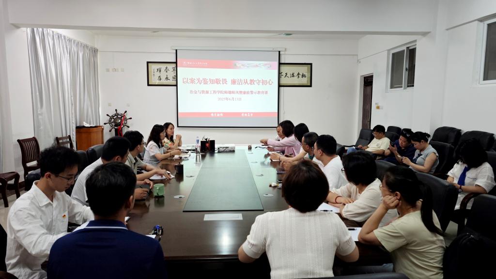 2025年6月13日,冶金与资源工程学院在探源楼5207会议室召开师德师风暨廉政警示教育专题会议,学院全体教职工参加会议。会议由学院党委副书记兼纪委书记方艳主持。