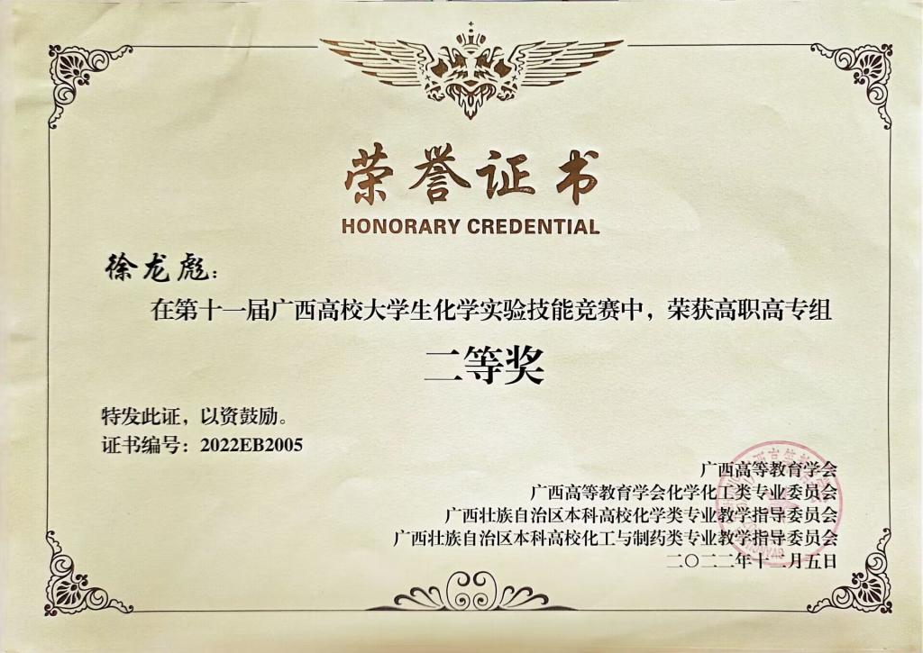 获得第十一届广西高校大学生化学实验技能竞赛二等奖