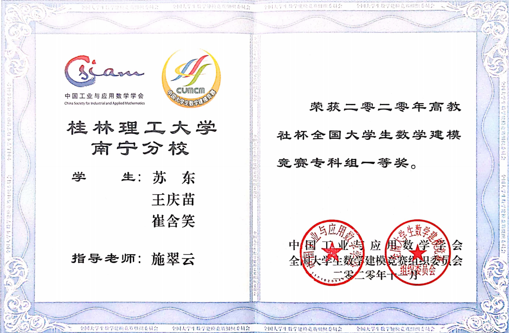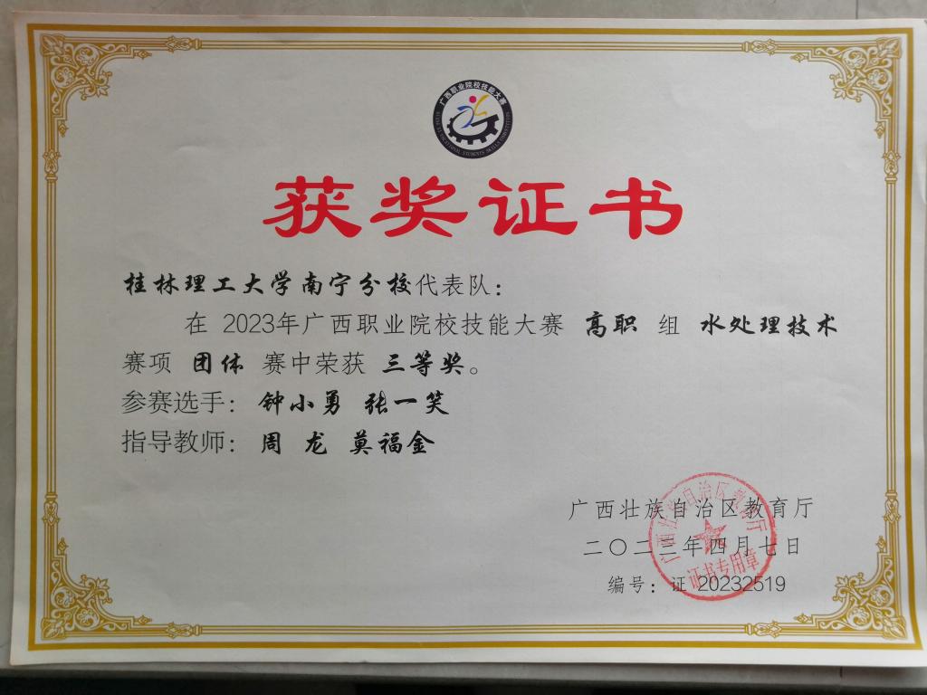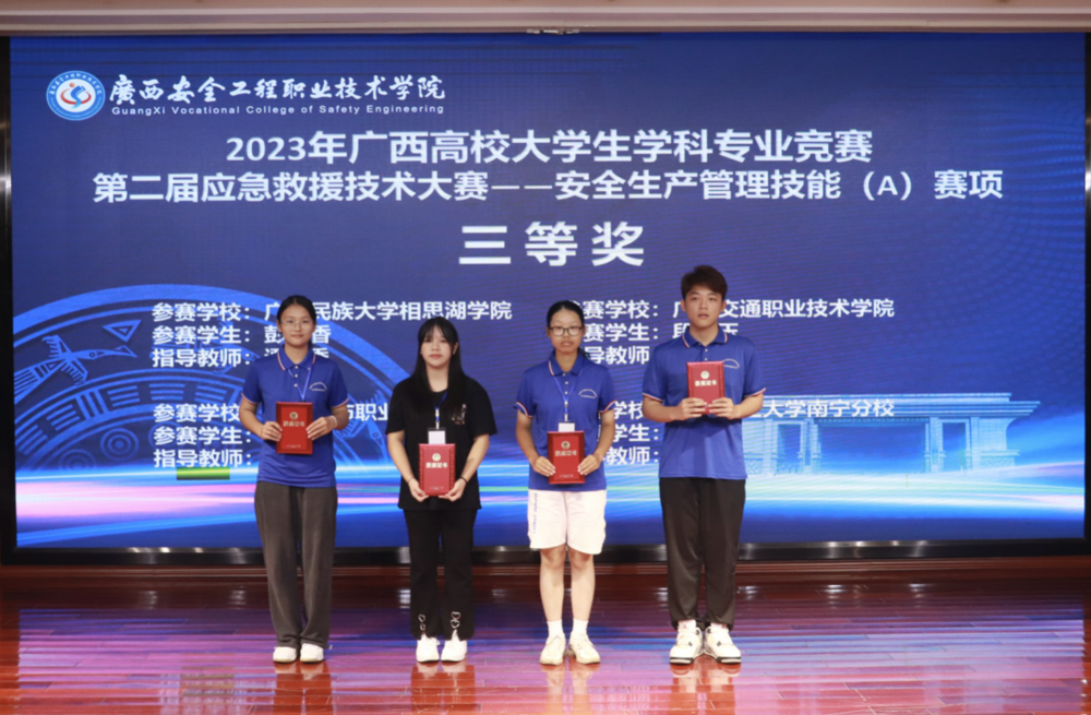 学生参加各级各类比赛收获颇丰。近年来,学生全国职业院校班组生产现场管理网上知识竞赛获得一等奖1项、二等奖1项、三等奖3项;参加广西职业院校技能大赛等区级赛事获得一等奖1项、二等奖5项、三等奖7项;参加“互联网+”大学生创新创业大赛和中华职业教育创新创业大赛获国家级铜奖1项、区级金奖1项、区级银奖4项、区级铜奖4项、校级奖项8项;获大学生创新创业训练计划区级立项2项、校级立项3项。学生参加全国大学生英语竞赛获国家一等奖2项,二等奖3项,三等奖4项,优秀奖6项;数学建模全国三等奖1项、区级一等奖1项、三等奖3项。