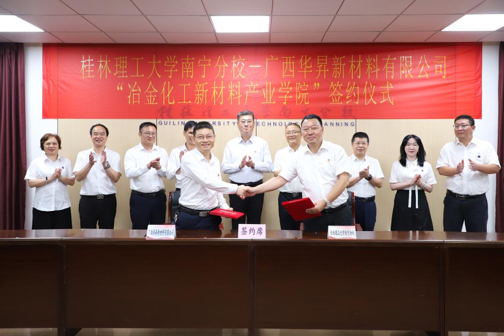 学校党委常委、副校长,时任太阳集团2138校长罗盛锋和广西华昇新材料有限公司签约成立冶金化工新材料产业学院