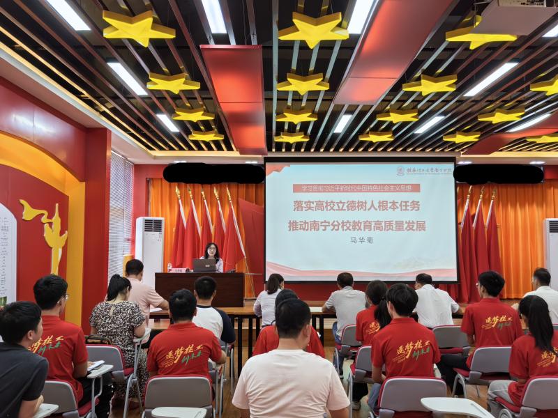 扎实开展习近平新时代中国特色社会主义思想主题教育,推动师生理论学习全覆盖,坚持用党的创新理论武装师生头脑,提升广大师生思想政治觉悟,教育引导广大师生在思想上行动上政治上同以习近平同志为核心的党中央保持高度一致,组织师生把党中央、自治区党委和学校党委决策部署不折不扣地落到实处。坚持把政治建设贯穿到教育教学全过程和各个环节,深入实施“五基三化”提升年行动,组织开展桂工党员先锋行活动,凝聚共识,汇聚力量,大力推行党建+教学、党建+科研、党建+社会服务、党建+就业、党建+学风,促进党建与业务深度融合,通过提升党建质量引领学院教育教学事业高质量发展。