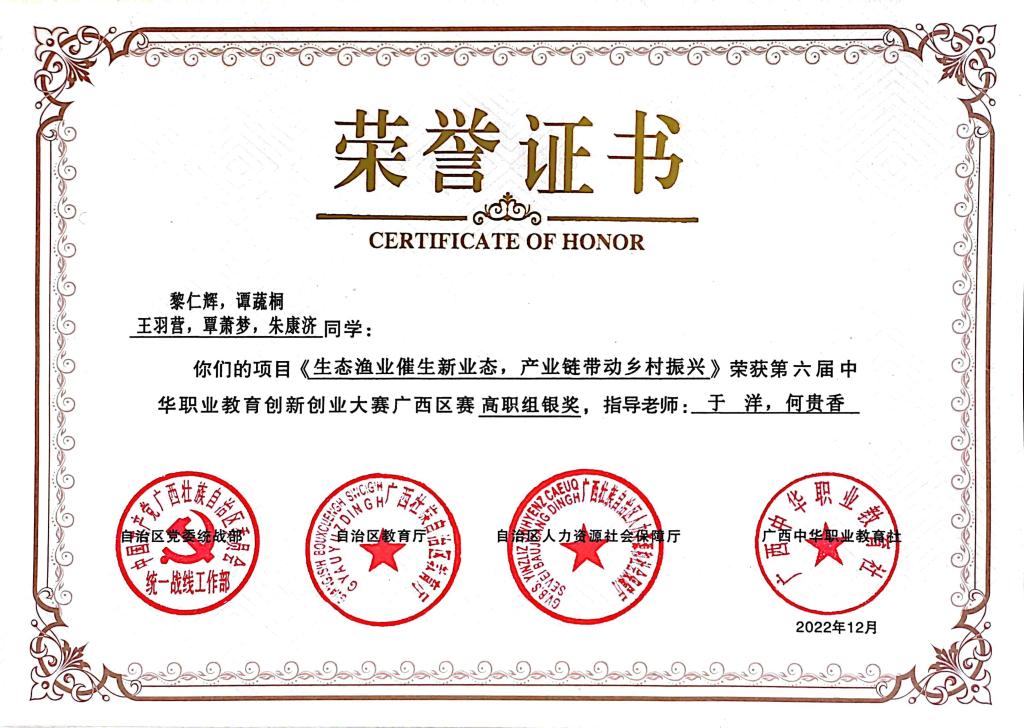 在第七届中华职业教育创新创业大赛广西区赛中喜获银奖