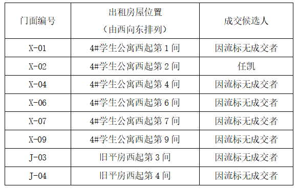 三、招租结果如下: